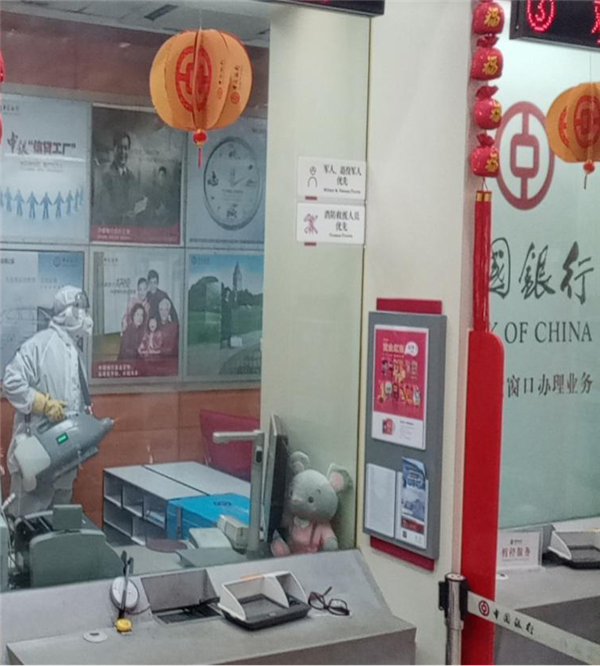 中國銀行實施消毒服務(wù),防控新冠疫情??辈炖鲜蟪鰶]區(qū)域,實施有效防治施工現(xiàn)場