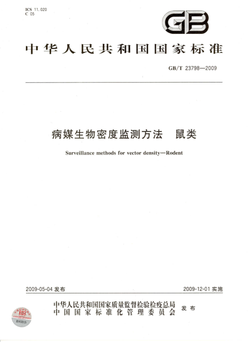 1-2 GBT 23798-2009 病媒生物密度監(jiān)測方法 鼠類