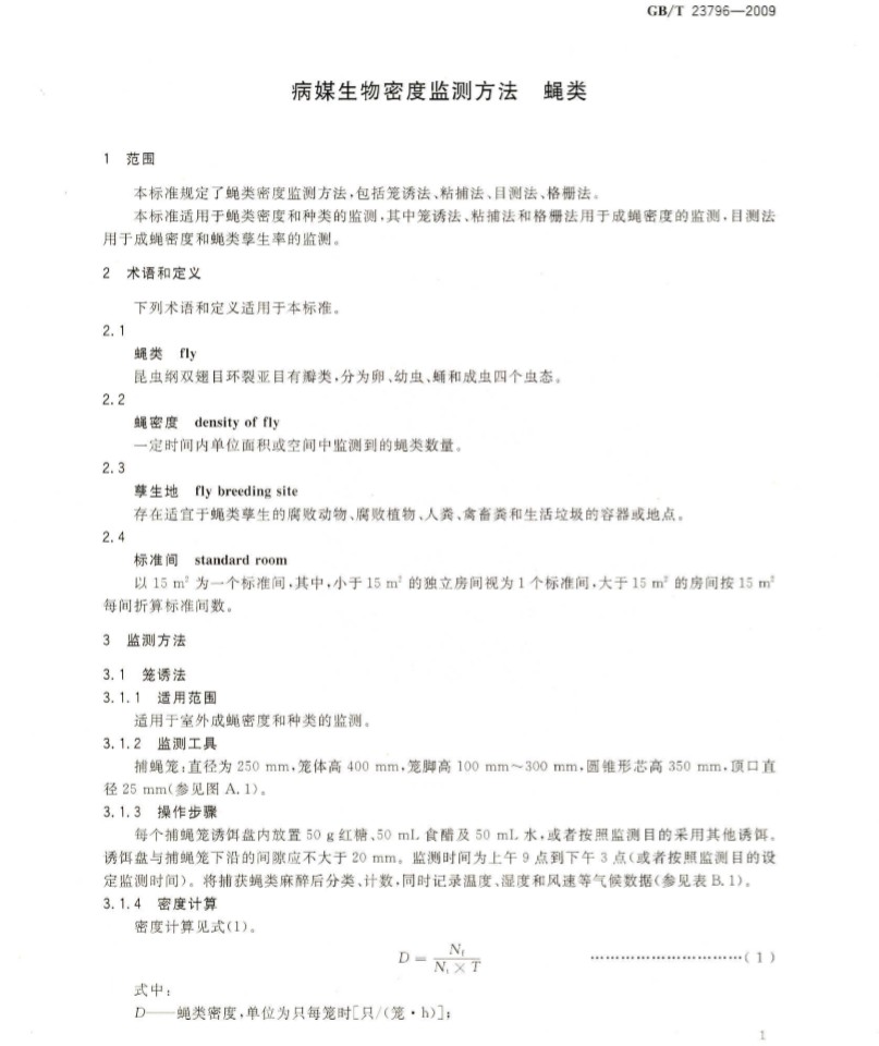 3-2 GB_T 23796-2009 病媒生物密度監(jiān)測(cè)方法 蠅類