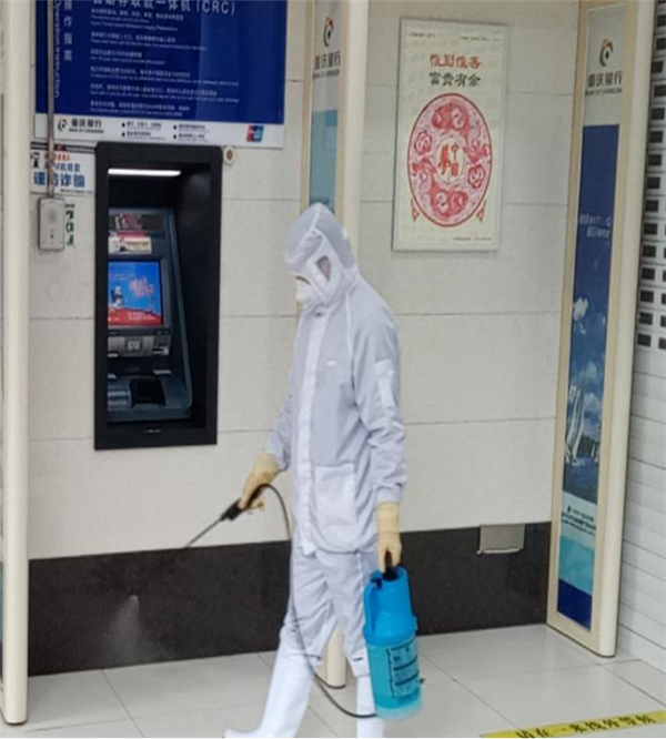 重慶銀行物表消毒預(yù)防新冠病毒施工現(xiàn)場