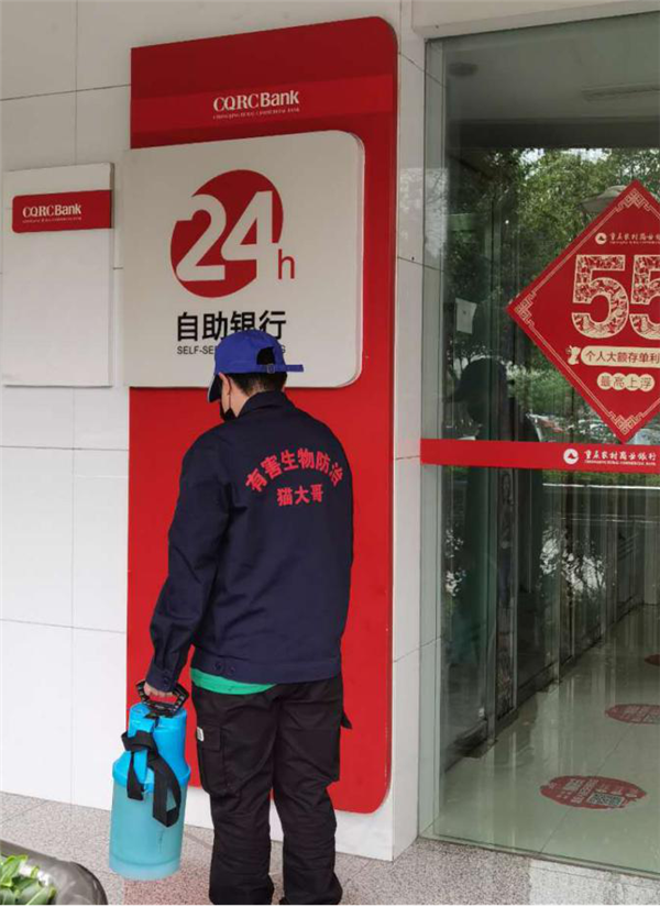 中國農(nóng)村商業(yè)銀行實施消毒服務(wù),防控新冠疫情;蟲害防治施工現(xiàn)場