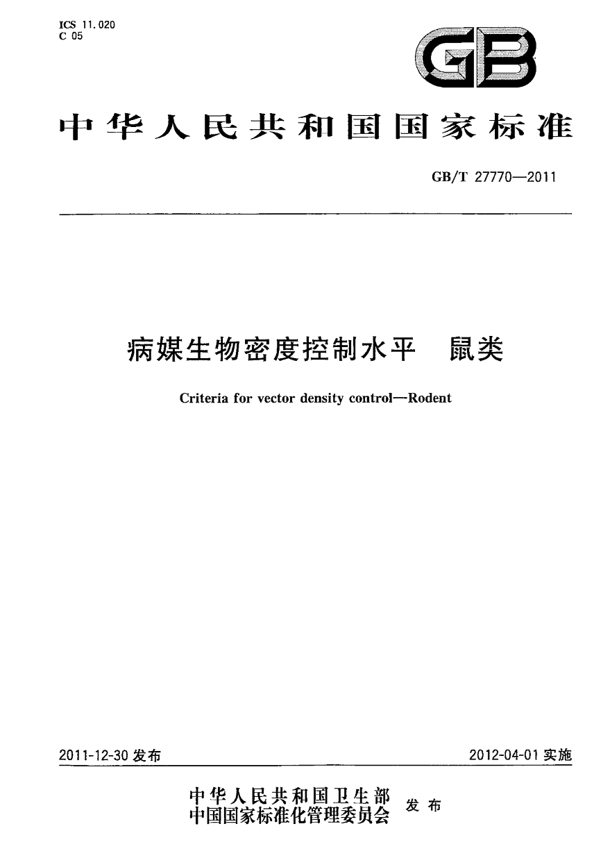 1 GB_T 27770-2011 鼠控制標(biāo)準(zhǔn)